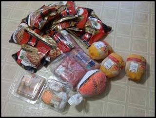 So we get paid in the middle of the month, which makes budgeting weird, but anyways....I decided to make dump chicken meals for the month - you know where you throw everything in a bag and then when you're ready you toss it in the crockpot. So.... I gathered up recipes from the internet and got some great deal on meat. Just look at my bounty below?!